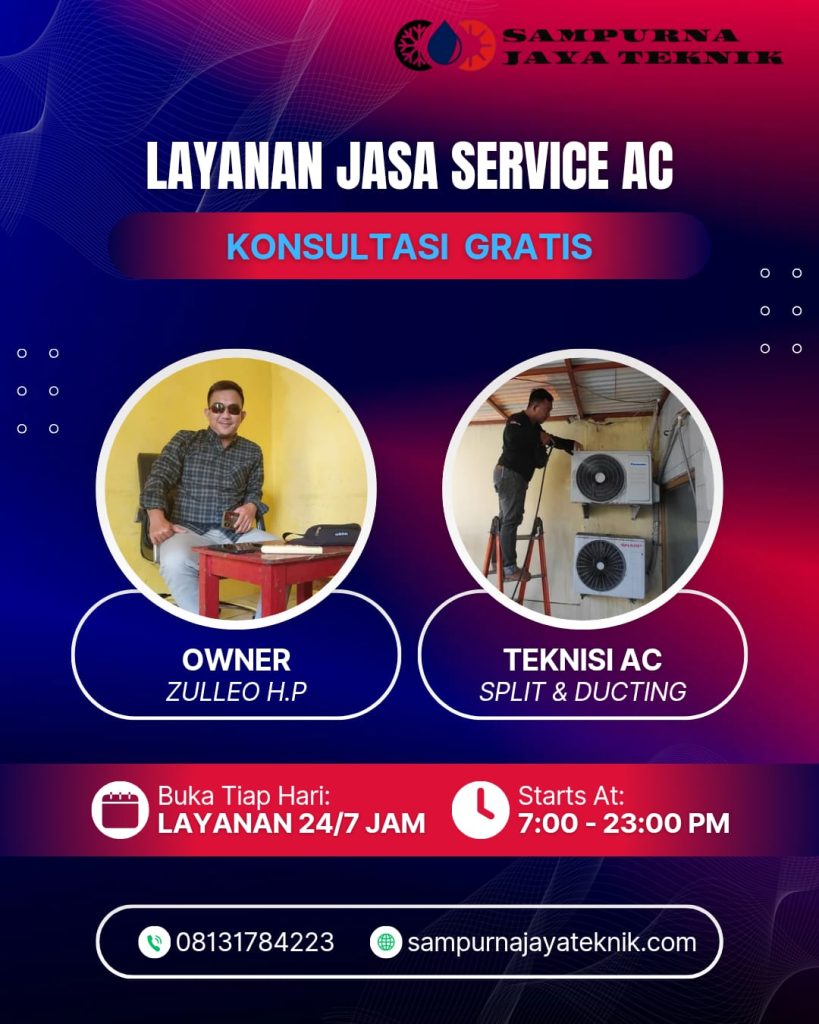 Selamat datang di SAMPURNA JAYA TEKNIK, penyedia layanan terkemuka dalam perbaikan AC, pemasangan AC, pembersihan AC, dan pengadaan AC. Kami didirikan oleh seorang ahli AC berpengalaman, Bapak Wawan Ependi.